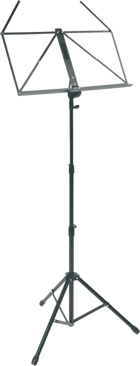 Robust music stand with rounded legs tripod that is easy to assemble, comes with carry-bag.