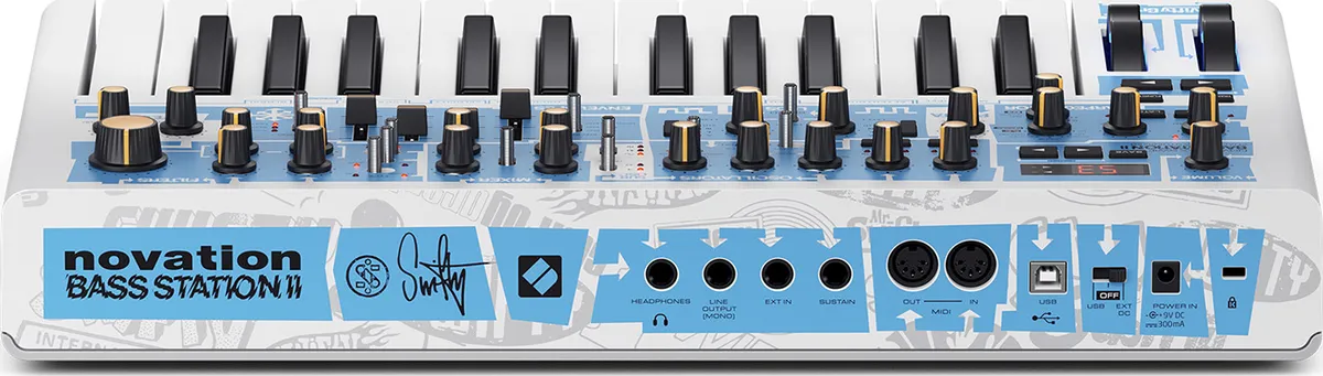 Now, that aesthetic comes to hardware for the first time. This limited-edition Bass Station II features Swifty-signature typography, custom-printed panels, and graphic motifs inspired by rave flyers, dubplate culture, and DIY zines.
