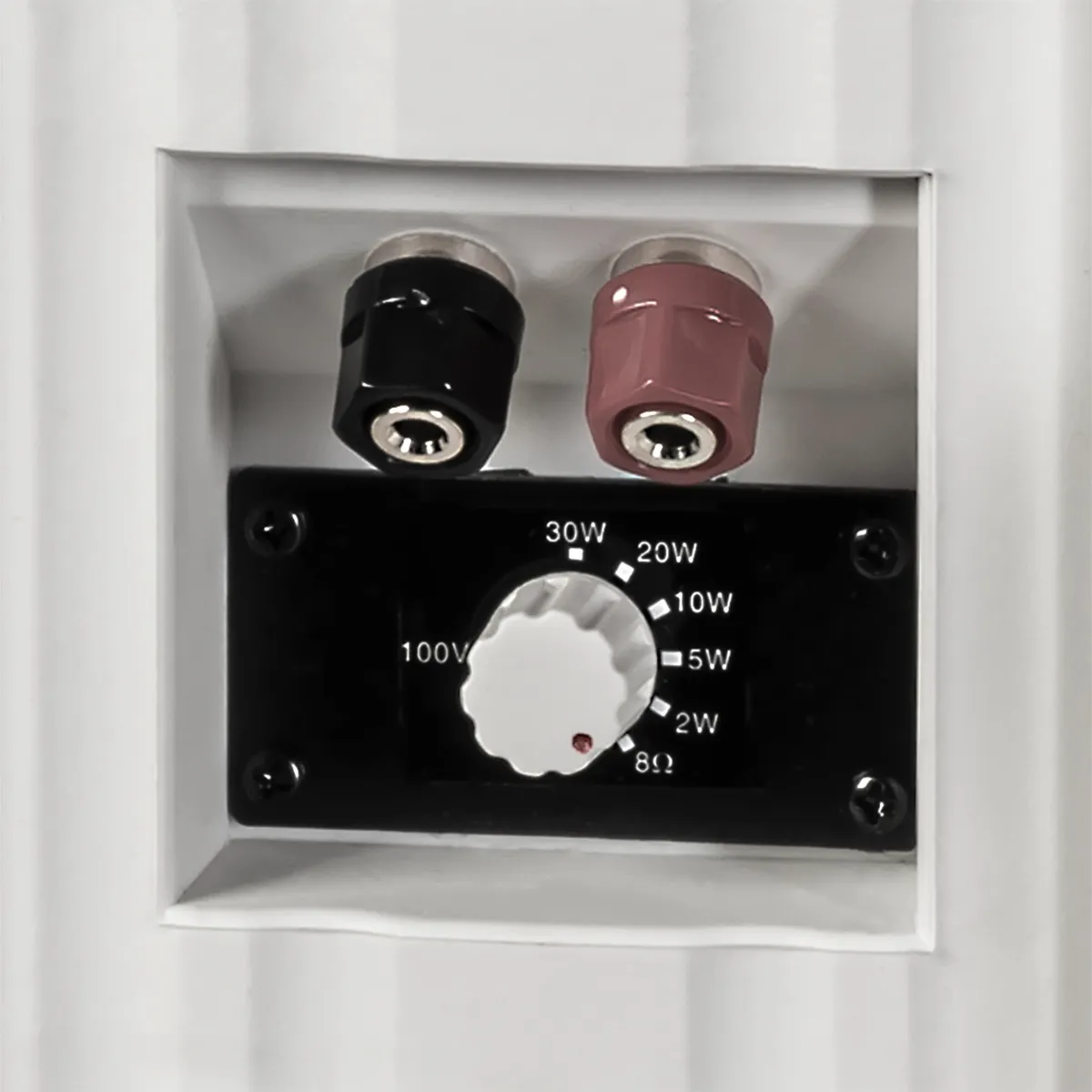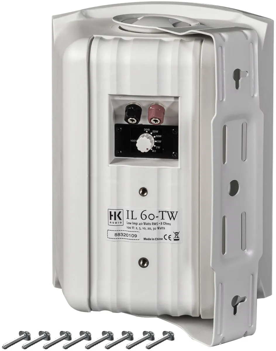 This compact two-way speaker delivers fullrange audio signals in HD quality. It is perfect for covering short distances such as in foyers or bars. The IL 60 TB/TW”s polymer housing is trapezoidal to prevent the formation of standing waves as well as to facilitate corner mounting and inconspicuous installation many different kinds of rooms. This enclosure provides satisfying fullrange sound even without a subwoofer. It features a 6.5″ woofer and a 1” tweeter with neodymium magnets. The two are configured in twin axial array and addressed via an internal passive crossover. The switchable 100V transformer provides five power taps, selectable via rotary switch. Its nominal power handling capacity is 40 watts RMS.