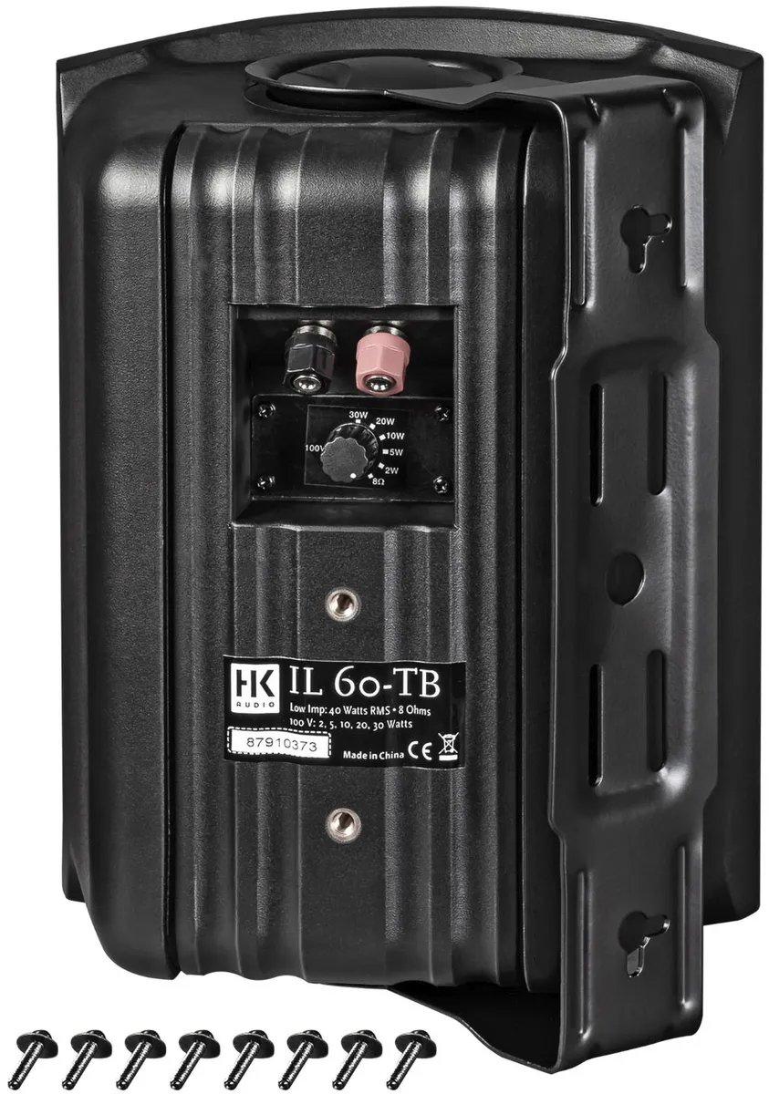 This compact two-way speaker delivers fullrange audio signals in HD quality. It is perfect for covering short distances such as in foyers or bars. The IL 60 TB/TW”s polymer housing is trapezoidal to prevent the formation of standing waves as well as to facilitate corner mounting and inconspicuous installation many different kinds of rooms. This enclosure provides satisfying fullrange sound even without a subwoofer. It features a 6.5″ woofer and a 1” tweeter with neodymium magnets. The two are configured in twin axial array and addressed via an internal passive crossover. The switchable 100V transformer provides five power taps, selectable via rotary switch. Its nominal power handling capacity is 40 watts RMS.