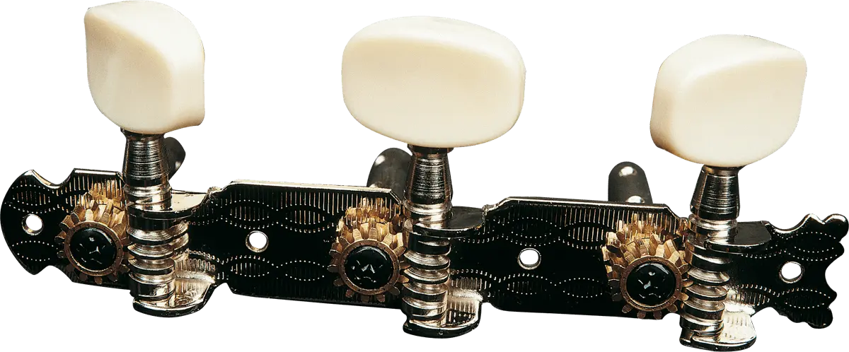 Machine heads, nickel plated brass with plastic button - Pack of 2 pcs (1 + 1)