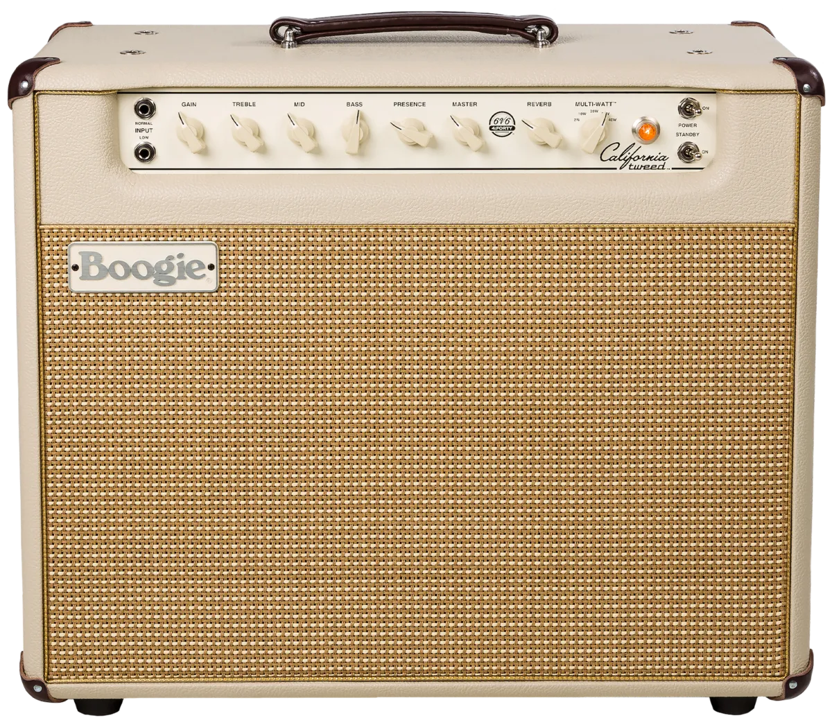 A quick look at the front panel of the California Tweed reveals that it is a simply designed, single channel combo amplifier. The channel includes normal and low inputs, as well as a gain, treble, mid, bass, presence, reverb and master controls. The legendary Vintage all-tube spring reverb effect with the option of connecting an external footswitch to control the reverb and a fully buffered, serial effects loop round off the equipment, which offers everything you need for the perfect "golden" tone - without unnecessary technology or complicated operation. Whether you want to plug your pedals directly into the input or into the integrated effects loop, the California Tweed 6V6 4:40 Combo offers an ideal platform for pedal enthusiasts in a compact head that captures the perfect Vintage sound and redefines portability.