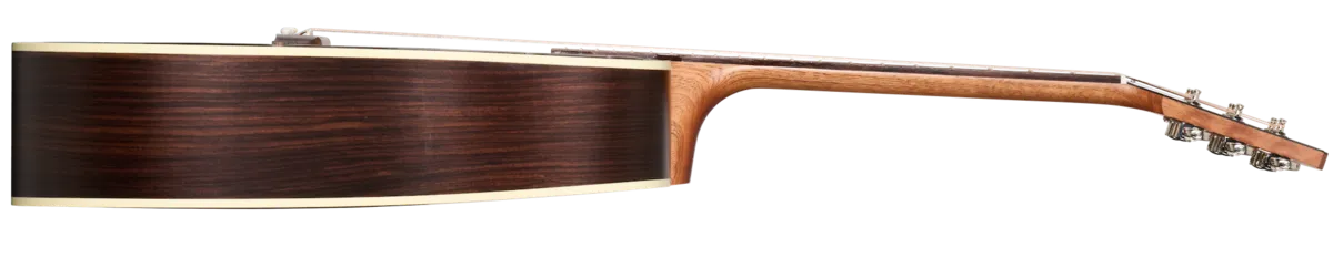 The Hummingbird™ Studio Rosewood continues Gibson's long history of producing world-famous square shoulder body designs, such as the Hummingbird, Dove™, and Songwriter models. The Hummingbird Studio Rosewood is handcrafted in Bozeman, Montana, using all-solid tonewoods, including a gloss nitrocellulose lacquer-finished Sitka spruce top for wide dynamic range, playing responsiveness, and balanced tone. The satin nitrocellulose lacquer-finished rosewood used for crafting the back and sides delivers a bit more rich-sounding bass and sparkling treble overtones than the traditional mahogany-bodied Hummingbird models. The Hummingbird Studio Rosewood's full-depth body ensures rich, deep tone and excellent volume and projection. The Hummingbird Studio Rosewood is equipped with an Advanced Response profile and satin nitrocellulose lacquer-finished utile neck for smooth, easy playability. The Advanced Response neck profile sits in between some of the other Gibson neck profiles and is not too large or too thin but sits "just right" in the hand for many players. The rosewood fretboard has 20 standard-sized frets and is adorned with the classic mother-of-pearl parallelogram inlays that are one of the visual hallmarks of the classic Hummingbird design. The fretboard's 16" radius makes playing fast passages easy and efficient, contributing further to the model's excellent playability. You'll find yourself reaching for this guitar again and again since playing it is so enjoyable. The headstock is equipped with smooth-turning Grover® Rotomatic® tuning machines and a Graph Tech® TUSQ® nut for excellent tuning stability SO you can spend more time playing and less time tuning. The saddle and bridge pins installed on the rosewood bridge plate are also TUSQ. The Hummingbird Studio's pickguard graphics deliver another classic Hummingbird visual touchstone. The Hummingbird Studio Rosewood has an L.R. Baggs™M Element Bronze active under-saddle piezo pickup with a quick-to-access soundhole-mounted volume control for easy studio-quality plug-and-play anywhere. Packaged in an included hardshell case for portability and protection, the Hummingbird Studio Rosewood is ready to join you wherever your muse takes you.