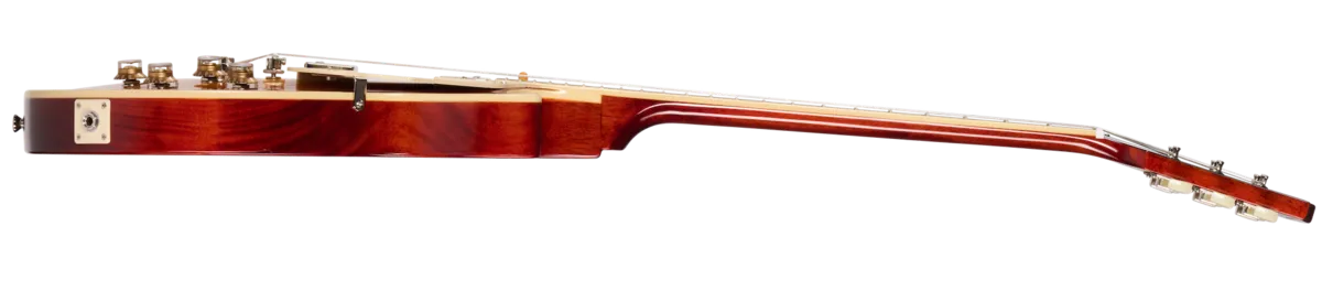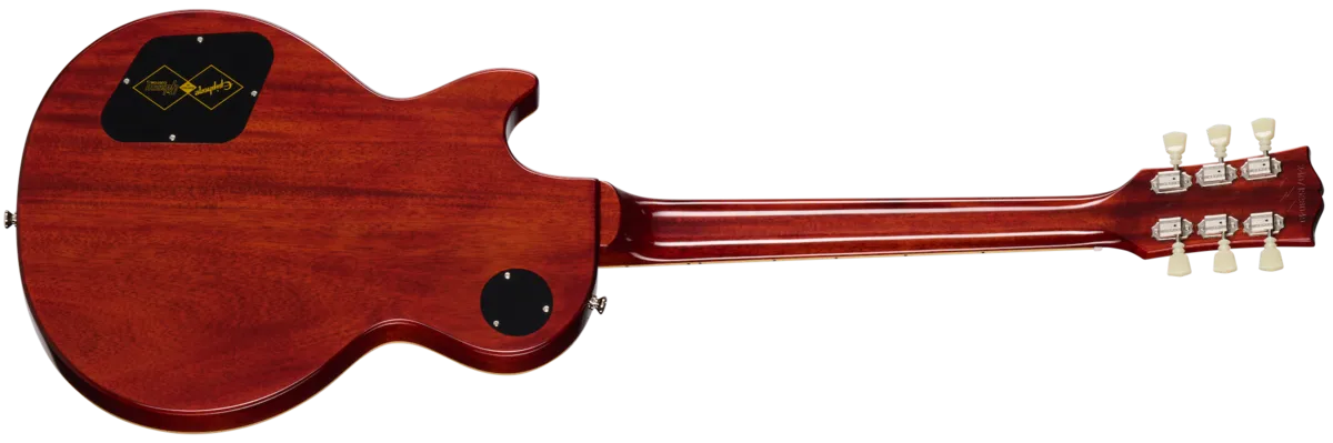 The 1960 Gibson Les Paul™ Standard is one of the world's most coveted vintage guitars. It has been embraced by such luminaries as Eric Clapton, Paul McCartney, and Joe Walsh. The 1960 Les Paul Standard iS very similar to the famous 1959 model year that preceded it, but with a few changes, most notably, a thinner and faster-playing SlimTaper™ neck profile that many players prefer over the somewhat beefier 1959 Les Paul Standard neck profile. Now, Epiphone is proud to introduce the Epiphone 1960 Les Paul Standard Reissue, a beautiful recreation of those vintage 1960 Les Paul Standard models. Made in partnership with Gibson Custom, the Epiphone Les Paul Standard 1960 Reissue delivers vintage Les Paul looks and performance at an accessible price. All of the classic appointments the 1960 Les Paul Standard model is known and loved for are present here, including a one-piece mahogany neck with a long neck tenon for increased stability and sustain, a comfortable, fast-playing Slim Taper™ profile, and a bound rosewood fretboard. It also features mother-of-pearl trapezoid fretboard inlays, an aged mother-of-pearl Epiphone headstock logo, and the words "Les Paul Model" silkscreened in gold on the Gibson-style "open book" headstock. Even the side dot position markers are the same size as on vintage 1960 Les Paul Standard models and are placed in historically accurate locations. The genuine mahogany body features a carved maple cap that is topped with a beautiful AAA flamed maple veneer. The electronics are equally impressive, with two USA Gibson Custombucker humbucking pickups with Alnico 3 magnets that are hand-wired to CTS® potentiometers, Black Beauty paper-in-oil capacitors, and a Switchcraft® pickup selector toggle switch and output jack. The Vintage Gloss finish gives the guitar a vintage appearance without looking overly aged and is nicely complimented by the nickel hardware, including the Epiphone Deluxe "Double Ring" Keystone button tuners. A Brown hardshell case with Inspired by Gibson Custom graphics and a pink plush-lined interior is also included. This is the perfect Les Paul for players who love the vintage appeal of the classic 1959 Les Paul Standard but who want a more comfortable neck profile.