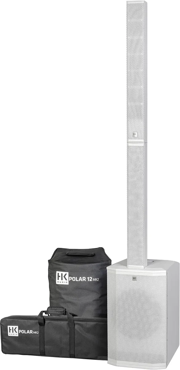 The POLARMK2 ColumnSix efficient, lightweight 3" neodymium midrange drivers in a low-resonance aluminium profile ensure a particularly high-resolution, unadulterated reproduction of instruments and the human voice. The combination of a 1" precision high-frequency driver with a constant directivity horn delivers 120° dispersion to provide optimal sound coverage of the audience. A completely newly developed connector creates a secure and smooth connection between the components. Without spacers, POLAR MK2 is also perfectly suited for applications where sound is to be projected to a seated audience, for example. The column elements are delivered in a padded transport bag to save space, which also offers even more security and protection.The POLARMK2 SubwooferWhen it comes to deep bass, nothing can replace volume. We use applied physics instead of extreme pre-filtering. The newly designed, voluminous and torsion-resistant wooden cabinet effectively suppresses resonance. The high-performance long-throw woofers guarantee clean, dry bass. Cleverly positioned recessed grips on the top and base make transport and handling easier. The padded protective cover for the subwoofer is included, and an optional wheel board is also available.The integrated MixerPOLAR offers a 4-channel mixer including master volume control, Bluetooth 5.0 and TWS audio streaming: two channels for microphones and line signals (e.g. mixers, keyboards), a high-impedance instrument channel (guitar) and an AUX channel for DJ equipment or MP3 players, which simultaneously controls Bluetooth audio. The microphone inputs feature switchable phantom power for operating high-resolution condenser microphones. A USB-C charging socket is also integrated for maintaining the charge of smartphones, tablets and battery-powered wireless microphone receivers without the need for an additional charger. With Bluetooth TWS (True Wireless Stereo), two POLAR MK2 systems can be connected wirelessly to play a stereo stream from a tablet or smartphone.