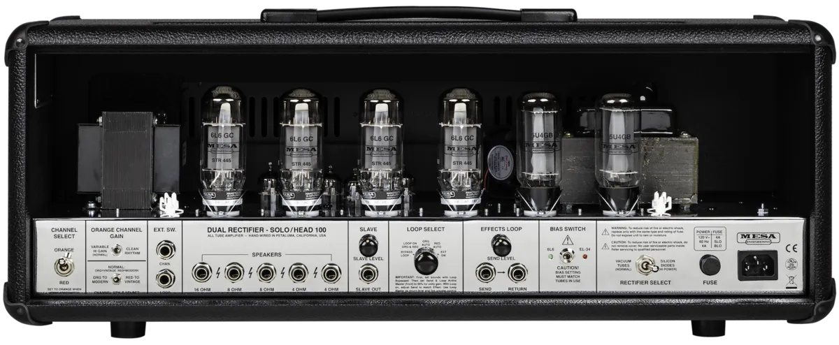 The iconic 90s-era two-channel Dual Rectifier returns The Dual Rectifier® Solo Head's release in 1992 marked a new paradigm in high-gain heavy guitar. It delivered a new voice from MESA® Engineering featuring a scooped midrange, ominous low end, and ripping, harmonic- laden top end woven into a mighty wall of tube gain. With a feel as empowering as its sound, the Rectifiers provided an ease of playing that supported and elevated proficiency and was inspirational, rewarding, and addictive. Its sound and impact on the generation that used it to define what rock music would become were as sweeping as they have been lasting. It has gone on to become one of the most recorded and imitated tube amps ever, as well as arguably the most modeled in today's digital amp landscape. With harmonic-laden gain and ominous low end, the "Recto" became the foundation for radio-worthy songs whose main source of propulsion was huge Crunch rhythm and searing Lead or octave hooks. Its options for tuning the sound and feel made it the go-to for anyone needing maximum width and girth within a three-piece scenario, while its looks provided an aggressively styled backdrop. With reverence and pride, we announce the 90s Dual Rectifier, a faithful recreation of the tube amp that redefined high gain and provided much of the soundtrack of a generation, with some welcome upgrades like improved cleans that enhance but don't distract. Here's a chance to own an original icon built by the same artisans who built them 30 years ago and have a new amp warranty. Don't miss out!