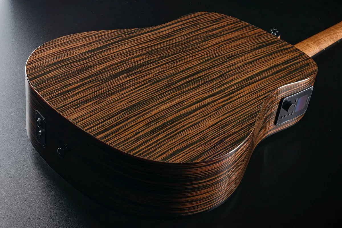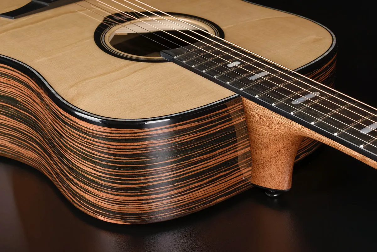 and sides produce a dynamic and balanced range, perfect for bold strumming and expansive melodies. The ergonomic armrest bevel ensures comfort during extended sessions, while the abalone inlays