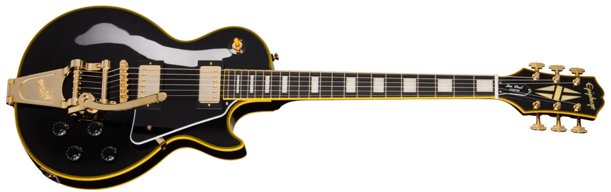 Joe Bonamassa is widely renowned for his guitar-playing prowess and as a world-class guitar collector. One prized gem in his collection is his 1959 Gibson Les Paul Custom. The original Les Paul Custom came to be known as the "Black Beauty," and examples from the late 50s are highly sought after, but this particular guitar is quite unique. Joe's guitar is a rare custom order with two pickups instead of the standard three-pickup configuration. Adding to its allure, it also sports Grover® Imperial™ tuners and a Bigsby® vibrato tailpiece. The Epiphone Joe Bonamassa 1959 Les Paul Custom faithfully recreates this exceptional guitar for players everywhere to enjoy and at an accessible price. It has an Antique Ebony finish over its all-mahogany body, which features aged multi-ply binding on the top and back. The mahogany neck has a 1959 Rounded Medium C profile and is topped with a bound ebony fretboard that is equipped with 22 medium jumbo frets and dressed up with pearloid block position marker inlays. The multi-ply bound 60s Kalamazoo-style headstock features the Epiphone logo and the iconic Custom Split Diamond inlay in mother of pearl and is outfitted with a low-friction Graph Tech® nut for excellent tuning stability. The Joe Bonamassa '59 Les Paul Custom is powered by a pair of punchy-sounding Epiphone ProBucker™ Custom pickups that are wired to individual volume and tone controls that use high-quality CTS® potentiometers for outstanding reliability and tonal versatility. As is fitting for a Les Paul Custom, the hardware is gold, including a LockTone ™ Tune-O-Matic ™ bridge, the Grover tuners, and the Bigsby B70 vibrato tailpiece. The combination of these elements creates an instrument that is not only visually stunning but also remarkably versatile in its sound. The Epiphone Joe Bonamassa '59 Les Paul Custom comes with a certificate of authenticity and a hardshell case with "Nerdville" graphics. This limited edition Epiphone Joe Bonamassa '59 Les Paul Custom is a tribute to a legendary guitarist and an iconic guitar and represents both a lasting investment and excellence in musical instrument craftsmanship. Campaign Mon