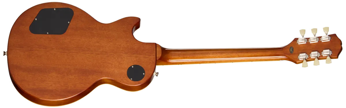 The Les Paul Standard 50s is crafted with a mahogany body and a maple cap, delivering the rich midrange punch of mahogany along with a touch of brightness from the maple cap, which is essential to the sonic signature of a Les Paul Standard. It also has a mahogany neck with a 1959 Rounded Medium C-profile and long neck tenon for exceptional stability and added sustain. The fretboard is now rosewood and features pearloid trapezoid inlays and 22 medium jumbo frets. The Kalamazoo headstock is equipped with Epiphone's Vintage Deluxe tuners and a Graph Tech® nut, ensuring solid tuning stability, while the other ends of the strings pass over an Epiphone LockTone M Tune-O-Matic ™ bridge and are anchored with a LockTone Stop Bar tailpiece. The Les Paul Standard 50s is powered by a pair of critically acclaimed Epiphone ProBucker™ humbuckers™, with a ProBucker 1 in the neck position and a slightly hotter ProBucker 2 in the bridge for a balanced tone in all three switch positions. The pickups are wired to CTS® pots using 50s-style wiring, and the controls are topped with gold Top Hat knobs with dial pointers. A premium gig bag is also included. The Les Paul Standard 50s is a fitting and accessible tribute to a legendary guitar that players at every stage can enjoy.