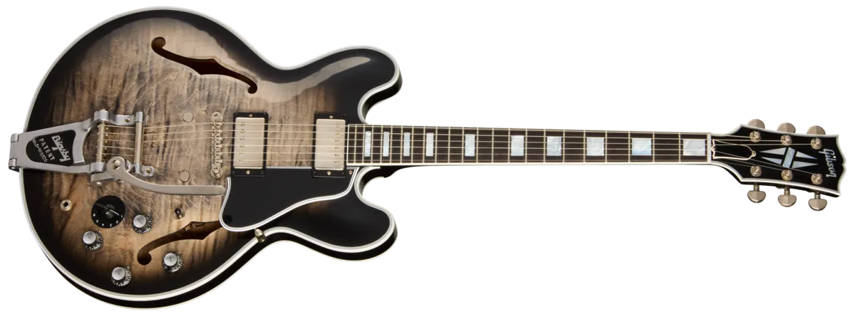 Gary Clark Jr.'s new number-one signature guitarAustin-born guitarist, singer, and songwriter Gary Clark Jr. has carved out a unique space in modern music, blending blues, rock, soul, and hip hop into a sound that's unmistakably his own. A four-time GRAMMY® Award winner celebrated for his electrifying live shows, Clark is widely regarded as one of the most influential players of his era. His previous Gibson and Epiphone signature models-an SG™ and a Casino i™-each reflected elements of his style. Now, Gibson Custom, working closely with Gary Clark Jr., proudly introduces the Gary Clark Jr. ES-355. Inspired by the first time he saw B.B. King perform with one, this Es-355 has become Clark's go-to guitar.The Gary Clark Jr. ES-355 features a three-ply maple/poplar/maple body with a figured maple outer layer, a mahogany neck carved to a 50s Rounded Medium C profile, and a bound ebony fretboard with 22 Historic medium jumbo frets and mother-of-pearl block inlays. Multi-ply binding graces the body and headstock, which also sports the Custom split diamond inlay and Grover® Rotomatic® tuners with Kidney buttons. Under the hood, a pair of unpotted Custombuckers with Alnico 3 magnets deliver rich tone, wired to CTS® audio taper pots and paper-in-oil capacitors, along with a Switchcraft® three-way toggle and 1/4" output jack. TrueHistoric black Top Hat knobs with silver inserts and dial pointers complete the controls, while a mono Varitone circuit with a black chicken head knob adds extra tonal flexibility. The hardware is VOS nickel, including the ABR-1 Historic no-wire bridge, and the guitar wears a stunning VOS Cobra Burst finish. Each instrument ships in a Gibson Custom hardshell case with Gary Clark Jr. graphics, featuring a brown exterior and black plush interior.This special run is limited to just 100 guitars, handcrafted by Gibson Custom Shop artisans in Nashville, Tennessee. With demand sure to be high, now is the time to secure this extraordinary instrument-Gary Clark Jr.'s new number one.