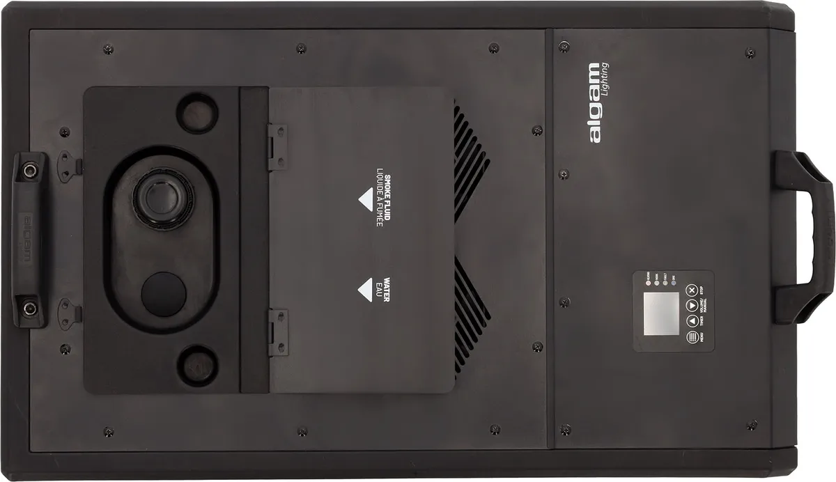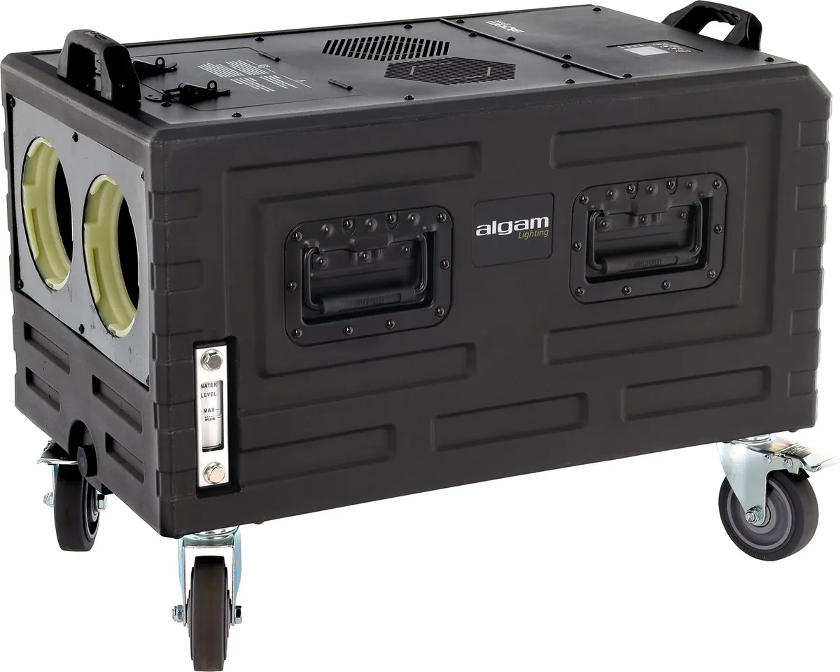 The Algam Lighting NEBEL3000 ABS combines high output with professional-grade design. With its 3000 W power, it delivers an impressive fog output of 566 m³ per minute, covering areas of up to 400 m². Its fast warm-up time of 4 to 7 minutes ensures efficient operation, even in demanding production environments. The dual output nozzles provide an even distribution of low-lying fog, maximizing visual impact on large stages and open spaces.