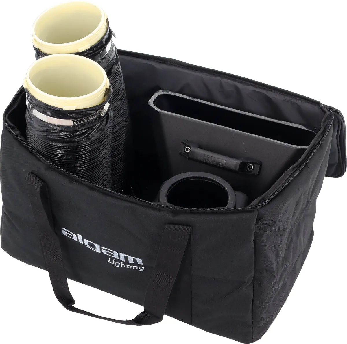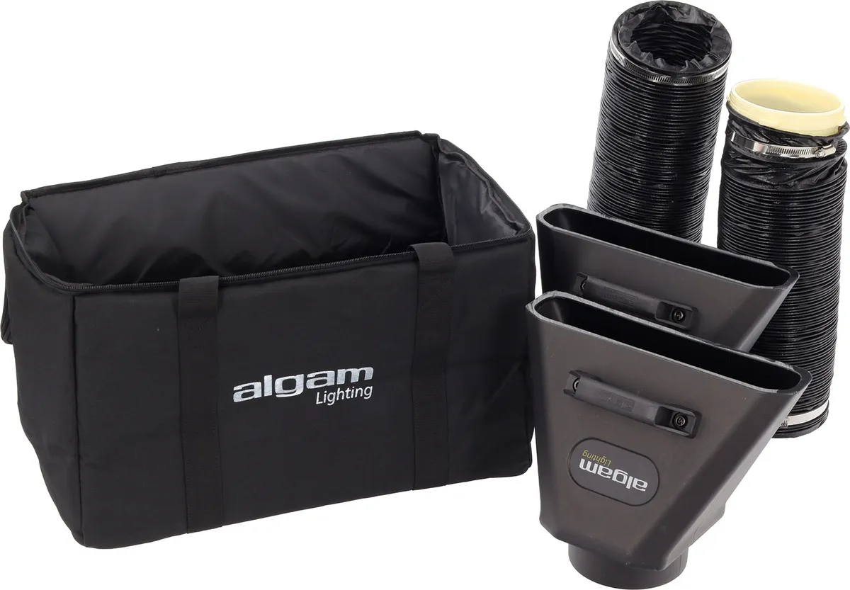 - Supplied with: PowerCon power cable, wireless remote control, accessory storage bag, 2 output nozzles, and 2 hoses with hose clamps