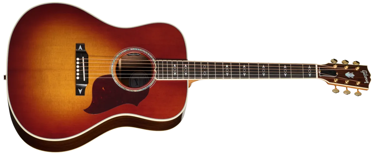 The Gibson Songwriter was introduced in the late 1990s and features a unique Gibson square shoulder modern dreadnought body design. The Songwriter Recording Artist captures the historic tonal advantages that come from Gibson's famed 1930s scalloped Advanced X-braced top, 25.5" long scale length, and tonewoods that are similar to the 1936 Advanced Jumbo's, for a unique sound that is still 100% Gibson. Created for the connoisseur of acoustic recording and live performance, the Songwriter Recording Artist is a superior, powerful, and dynamic guitar for the most demanding professional players.The Songwriter Recording Artist is handcrafted in Bozeman, Montana, using a thermally aged Sitka spruce top that is paired with a rosewood back and sides. The 25.5" scale mahogany neck has a comfortable Round profile, and is fitted with a smooth-playing, bound ebony fretboard that is equipped with 20 standard frets and adorned with mother-of-pearl diamond eye inlays. The neck has a compound dovetail joint and is attached to the body using hot hide glue for a stable connection and maximum tonal transfer. The bound headstock has a rosewood veneer that features the Gibson logo and Crown inlaid in mother-of-pearl. The nut is bone, and high-quality gold Grover® open-back tuners are fitted. The bridge is also ebony and is equipped with a bone saddle and TUSQ® bridge pins, and decorated with mother-of-pearl arrow inlays. The thermally-aged Sitka spruce top is protected by a custom line tortoise pickguard and features a wide abalone rosette.As the name implies, the Songwriter Recording Artist was designed to be a great recording and live performance guitar, and comes with high-quality electronics for easy plug-and-play performance in the studio or on stage. The built-in L.R. Baggs ™ HiFi system features dual bridge plate sensors and a preamp inside the guitar that deliver outstanding dynamics, string balance, and note definition, while also being feedback resistant. The preamp is voiced to work together with the sensors to deliver natural-sounding acoustic tone when plugged in. The system's soundhole-mounted volume and tone controls are easily accessed by the player while remaining all but invisible to the audience. The Songwriter Recording Artist ships in a Gibson hardshell case for protection when you're on the road, and is a great choice for modern acoustic guitarists who perform live and in the studio. Try one for yourself, and prepare to be amazed.