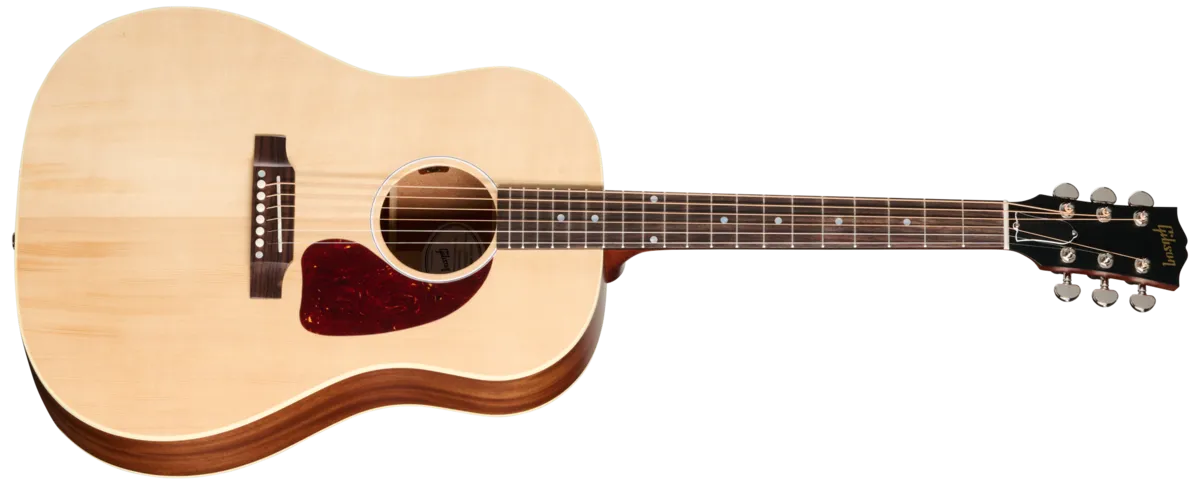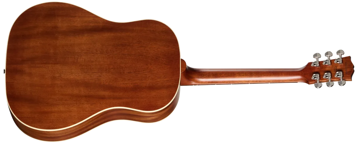 First introduced in 1942, the Gibson J-45 M has remained a mainstay Gibson acoustic model. It has earned its name as "The Workhorse" due to its wide acceptance, no-nonsense simplicity, and understated elegance. It's one of the most recorded acoustic guitars in history and Gibson's best-selling acoustic model of all time. Handcrafted with care in Bozeman, Montana, by Gibson's expert acoustic luthiers, the new Gibson J-45 Special offers players a USA-built Gibson acoustic guitar at a very attractive price. The J-45 Special has a round shoulder body constructed using genuine solid mahogany for the back and sides and a solid Sitka spruce top. The top is reinforced with our traditional scalloped X-bracing. This combination of tonewoods delivers a warm, balanced tone with excellent dynamic range that is great for any musical genre. The "concert depth" body is slightly thinner than on a J-45 Standard, giving the J-45 Special a leaner and tighter bass response that sits perfectly in the mix and also makes it easier to hold. The utile neck is attached to the body with a compound dovetail neck-to-body joint, and like all Gibson acoustic guitars, it is affixed with hot hide glue. The neck has a comfortable and fast-playing Slim Taper T™ profile, and the rosewood fretboard has a 12" radius and is adorned with simple mother-of-pearl dot inlays and is fitted with 20 standard frets. The traditional belly-up rosewood bridge is equipped with a TUSQ® saddle, and the nut and bridge pins are also TUSQ. High-quality Grover® Rotomatic® tuners ensure solid tuning stability. The J-45 Special is finished in satin nitrocellulose lacquer in your choice of Satin Ebony, Satin Natural or Satin Honey Burst. It comes with an L.R. Baggs Element Bronze under-saddle piezo pickup with active electronics and an easily accessible soundhole-mounted volume control pre-installed for studio-quality plug-and-play anywhere. The J-45 Special also comes with a premium soft shell case.