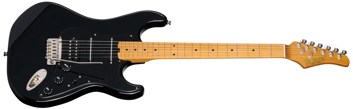 Body Shape Pacer Deluxe Material Alder lop N/A Binding N/ANeck Neck Thermally Aged Maple Profile Modern Elliptical C Nut width 42.88mm / 1.69in Fingerboard Thermally Aged MapleScale length 647.7mm / 25.5in Number of frets 22 Nut Graph Tech Inlay Black DotHardware Bridge Kramer GT 2-Point Tremolo with Push-In Arm lailpiece N/A Tuners Locking Mini Die Cast Plating NickelElectronics Neck pickup Kramer USA Triton Noiseless Pickup Middle pickup Kramer USA Triton Noiseless Pickup Bridge pickup Kramer USA Golden Classic Humbucker Controls Master Volume, Two ToneCase & SKUs Case Premium Gig Bag SKU KPDTRING1, KPDITBNG1, KPDITBNG1L