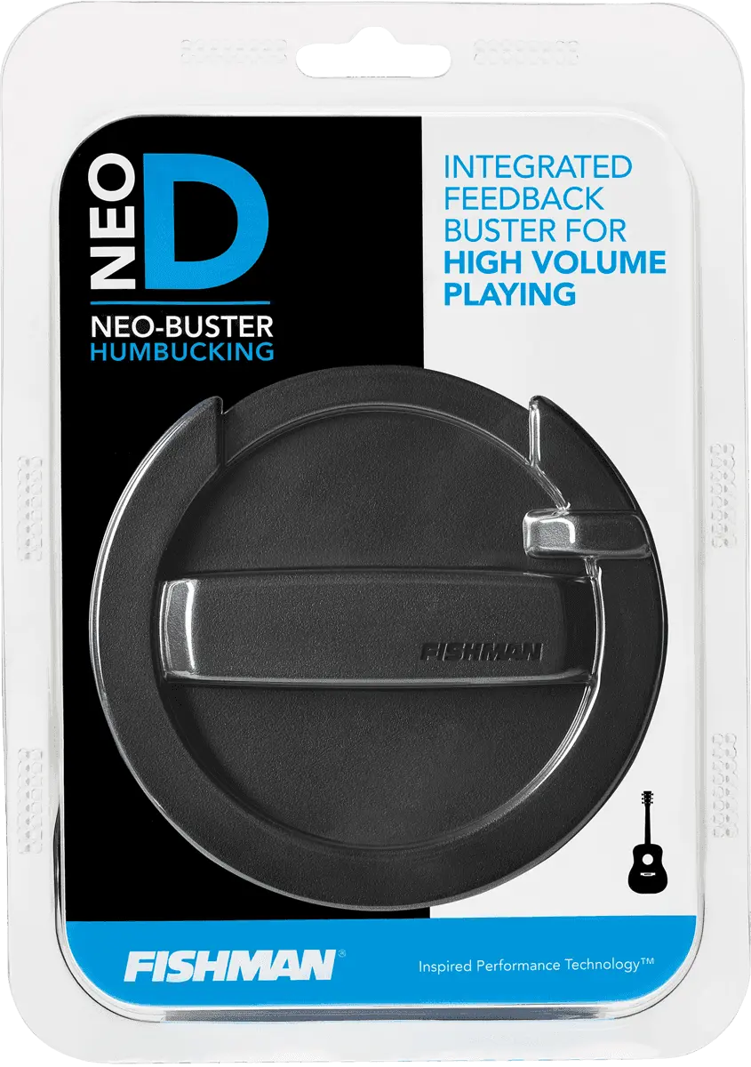 The Neo-Buster Humbucking from Fishman combines our popular Neo-D Humbucking pickup with a feedback-fighting soundhole cover to give you great sounding acoustic tone, even in your loudest performances.