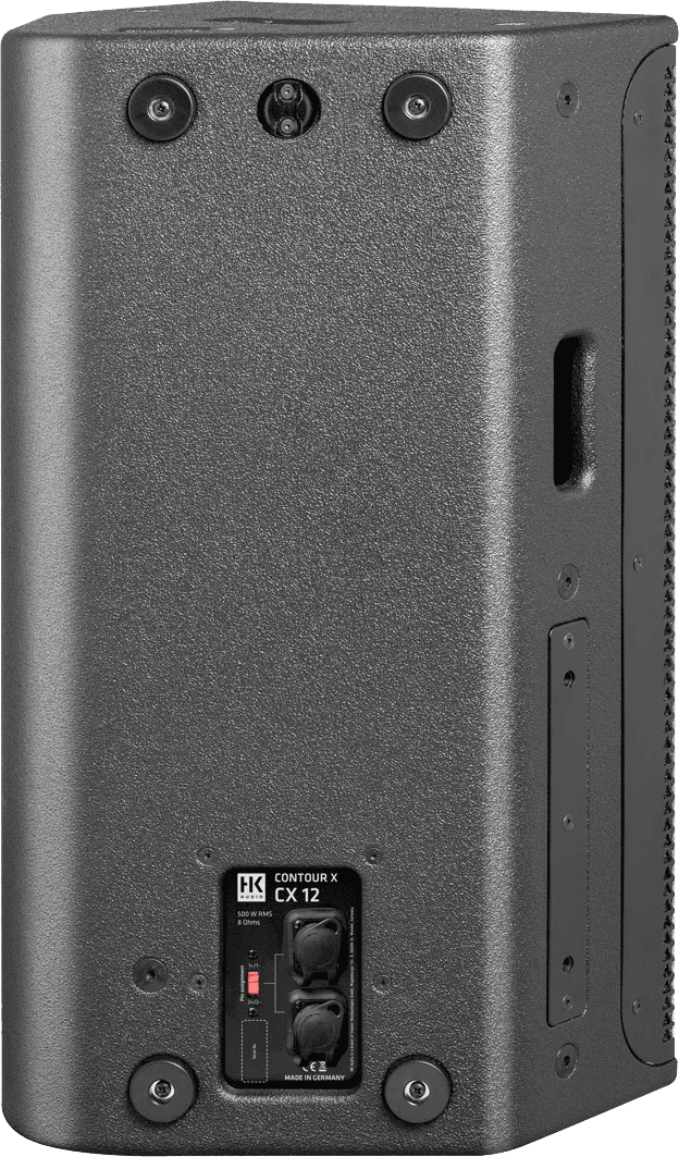 With the benefit of its dual-purpose housing, the CX 12 can serve as both an FOH and a monitor speaker. This unit‘s hallmarks include extremely high maximum SPL and excellent speech intelligibility. The CX 12‘s high-frequency horn was optimized using the BEM (Boundary Element Method). Its phase response is uniform; its dynamic range astonishingly wide. All this adds up to a high-definition, strikingly transparent audio image with very precise directivity. What‘s more, multiple units are easily clustered. A high-quality PU finish and a front grille with anticorrosive coating provide armor-like protection on the road. The Speakon Pin Assignment switch on the rear panel sets the input signal to 1 +/- or 2 +/-. The CX 12‘s low-profile housing makes it the stage monitor of choice for demanding performers. It comes in left and right versions for symmetrical monitoring arrays. And if you wish set up a powerful two-way active system, we recommend that you pair this enclosure with HK AUDIO CS 118 or CS 218 subwoofers. It achieves the best audio results when paired with a Lab.Gruppen PLM+ power amp with a LAKE controller as well as with a Powersoft X-Series power amp. Applications: Fullrange sound reinforcement, near-field sound reinforcement with high SPL requirements, e.g. as an FOH top unit, front-fill, side-fill or drum-fill top unit and as a monitor on large stages.