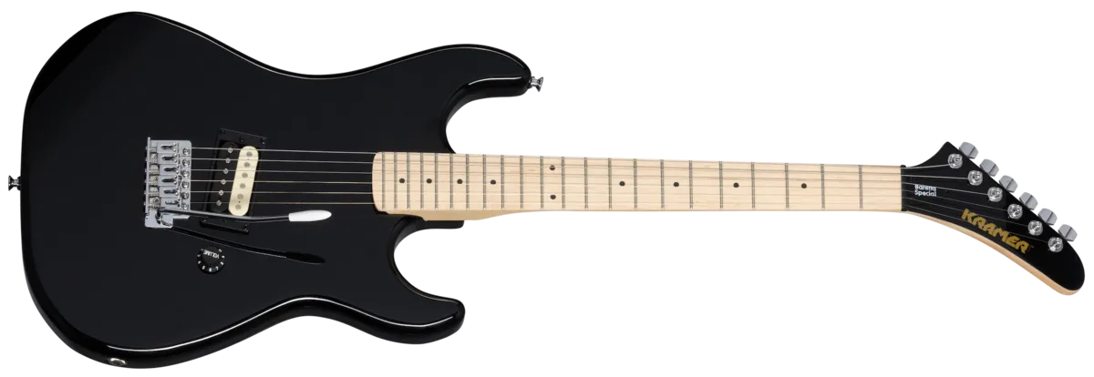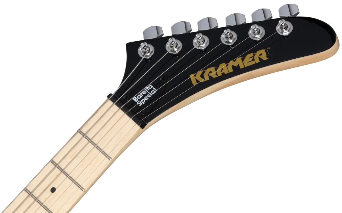 The Baretta Special from the Kramer Original Collection is a great way for new players to discover one of the most influential guitars in rock history at a price anyone can afford! Featuring a powerful Alnico 5 “zebra-coil” humbucker with a single volume control, a tone-rich mahogany body, maple neck, and a Kramer Traditional tremolo.