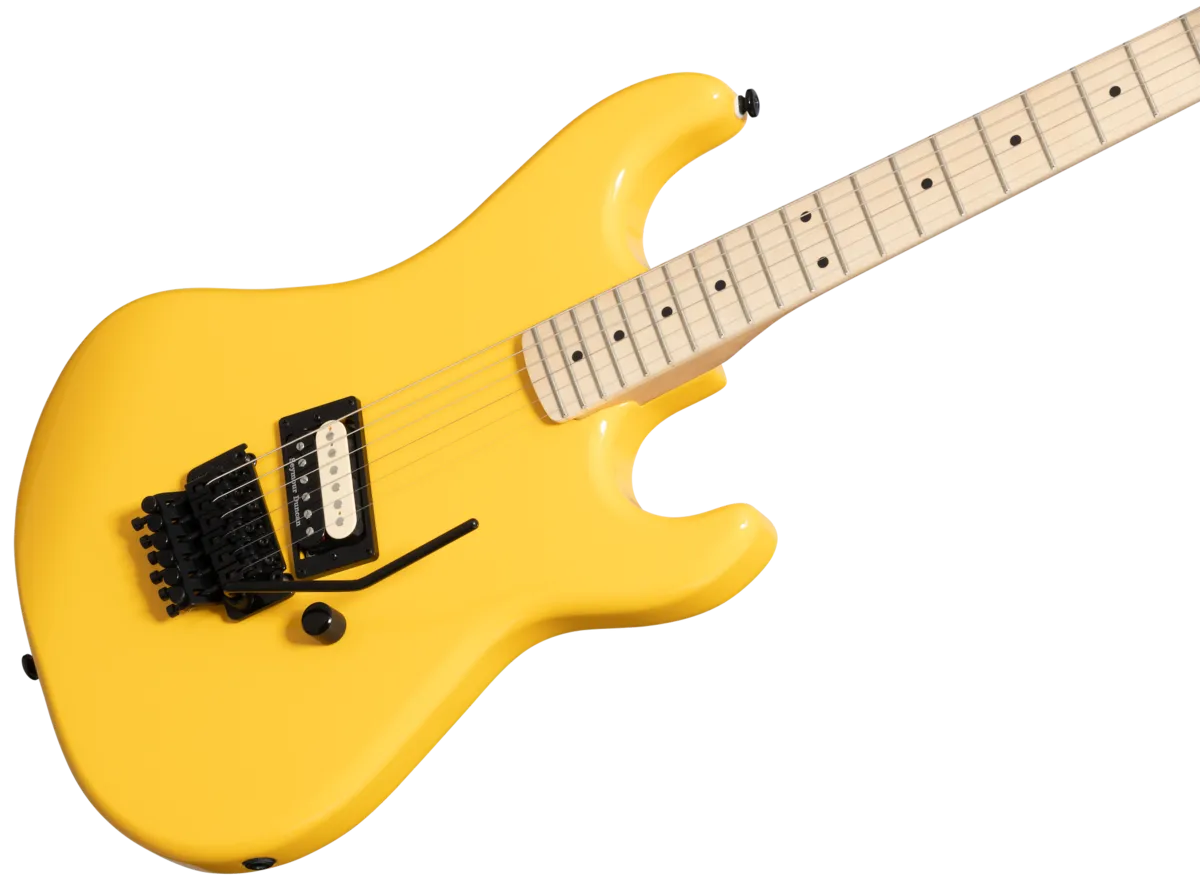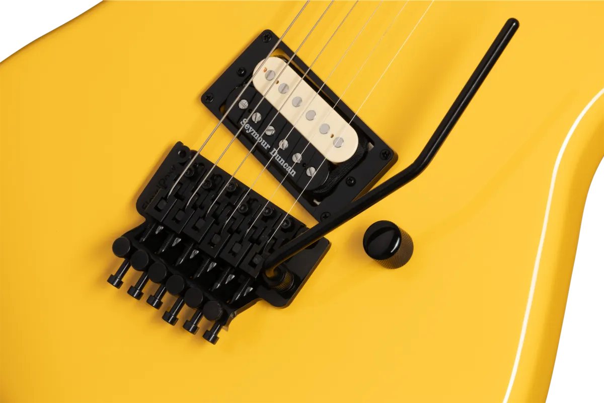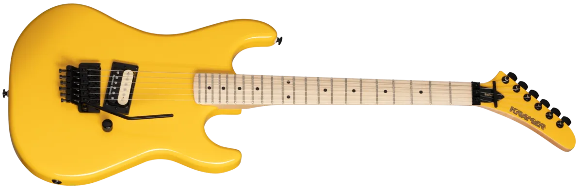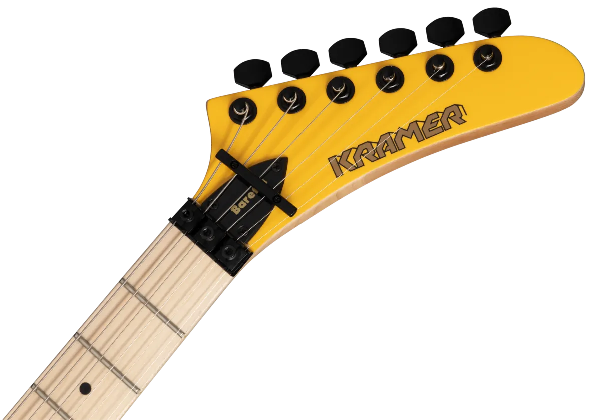 The Baretta is part of the Kramer Original Collection and is a tribute to one of the most iconic and original guitar designs in rock. Featuring a maple body, hard maple neck with a fast-playing satin finish, a single Seymour Duncan® JB™ zebra-coil humbucker, and a Floyd Rose® 1000 series tremolo with an R2 1000 series locking nut. Available in Ebony, Jumper Red, and Bumblebee Yellow.