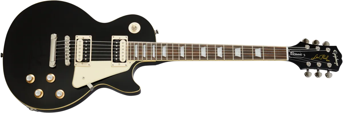 The Les Paul Classic from the new Epiphone Modern Collection presents the world’s most popular electric guitar at a price anyone can afford. Featuring the classic look of a late 50s Les Paul Standard with open-coil “zebra” Alnico Classic PRO™ humbuckers with CTS electronics, coil-splitting and phase switching, and Grover® Rotomatic machine heads. Available in Ebony, Honeyburst, and Heritage Cherry Sunburst.