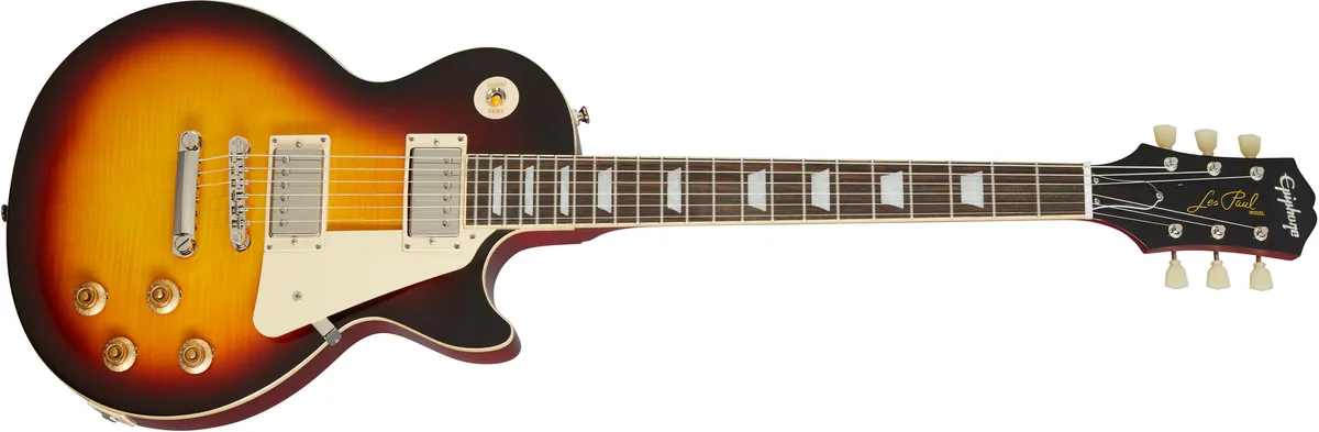The Limited Edition Epiphone 1959 Les Paul Standard Electric Guitar has a solid mahogany body with a carved harp maple cap topped with a AAA-grade flame maple veneer. This is a Les Paul guitar that clearly follows in the great tradition of Gibson's Les Paul Standard model from 1959”perhaps the most highly acclaimed, and widely recognized solid body electric guitar in the world.