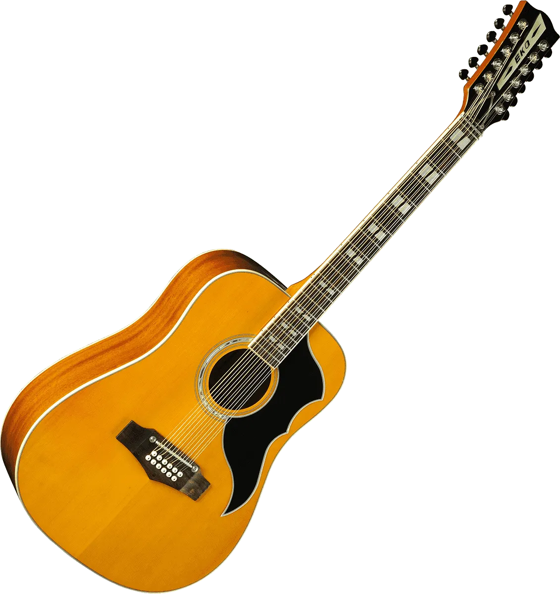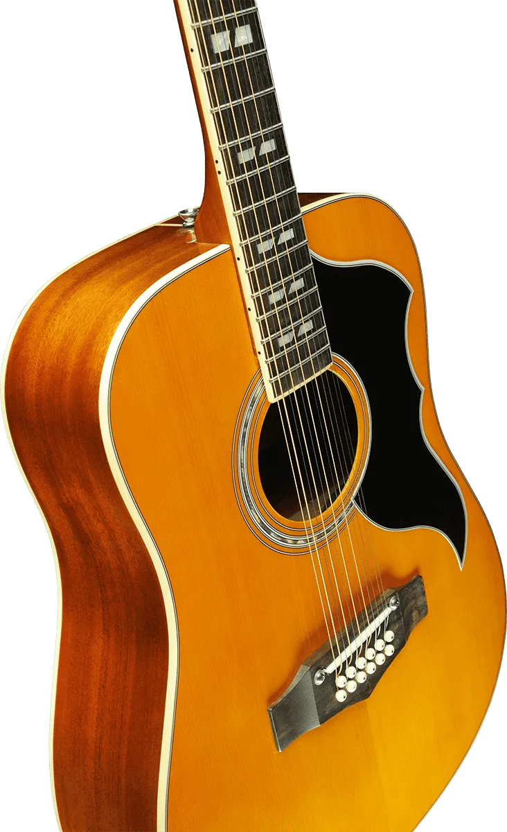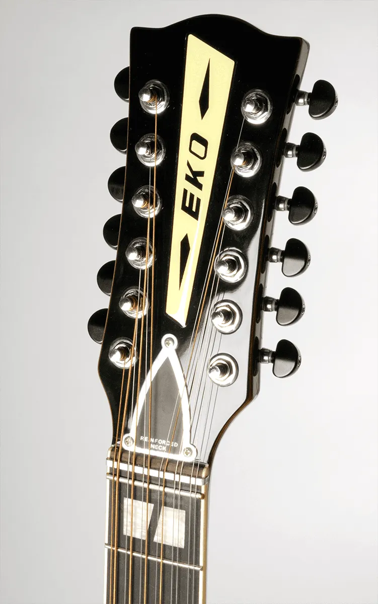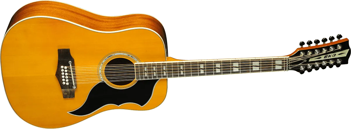 The first edition of this guitar goes back to 1962 when EKO decided on producing a series of folk guitars based on the popular dreadnought shape, very much in fashion in the U.S. at the time. The first 12 String known as J56 quickly became the best-selling 12-string guitar on the market.