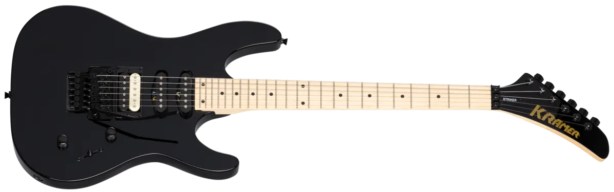The Kramer Striker™ is part of the Kramer Modern Collection and is a perfect entry to the world of Kramer's high-performance, shred-ready guitars! It features a satin-finished maple neck with a Kramer K-Speed SlimTaper™ C profile; it's fast, easy-playing, and incredibly comfortable. The exceptionally sonically versatile Striker comes equipped with three Alnico 5 pickups, including a zebra-coil bridge humbucker™ and two single coils, so it can provide sparkling clean single coil tones as easily as it delivers hard-rocking humbucker tones. It also has a licensed Floyd Rose® locking vibrato so you can use the whammy bar to your heart's content while remaining in tune.