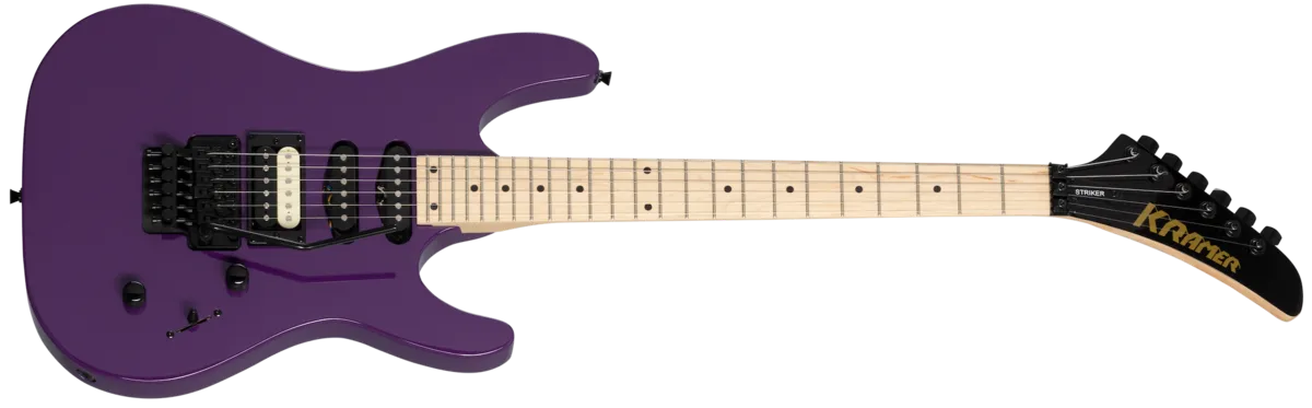 The Kramer Striker™ is part of the Kramer Modern Collection and is a perfect entry to the world of Kramer's high-performance, shred-ready guitars! It features a satin-finished maple neck with a Kramer K-Speed SlimTaper™ C profile; it's fast, easy-playing, and incredibly comfortable. The exceptionally sonically versatile Striker comes equipped with three Alnico 5 pickups, including a zebra-coil bridge humbucker™ and two single coils, so it can provide sparkling clean single coil tones as easily as it delivers hard-rocking humbucker tones. It also has a licensed Floyd Rose® locking vibrato so you can use the whammy bar to your heart's content while remaining in tune.