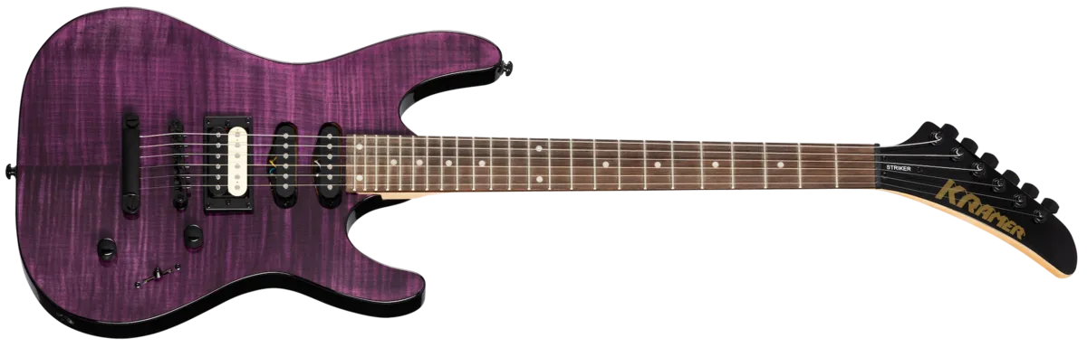 Part of the Modern Collection, the Kramer Striker™ Figured HSS is a gorgeous entry into the high-performance, shred-ready world of Kramer guitars! Along with its stunning AAA flame maple top veneer, it features a satin-finished maple neck with a Kramer K-Speed SlimTaper™ C profile that's fast, easy to play, and incredibly comfortable. Exceptional sonic versatility comes courtesy of a zebra-coil bridge humbucker™ and two single coils, delivering sparkling cleans as easily as harder-rocking tones that can cover a variety of styles. An Epiphone™ LockTone Tune-O-Matic™ bridge and Stop Bar tailpiece ensure excellent intonation and loads of sustain. An optional hardshell case is available.