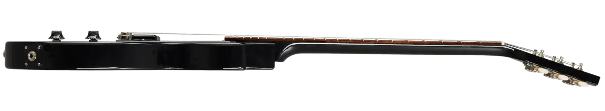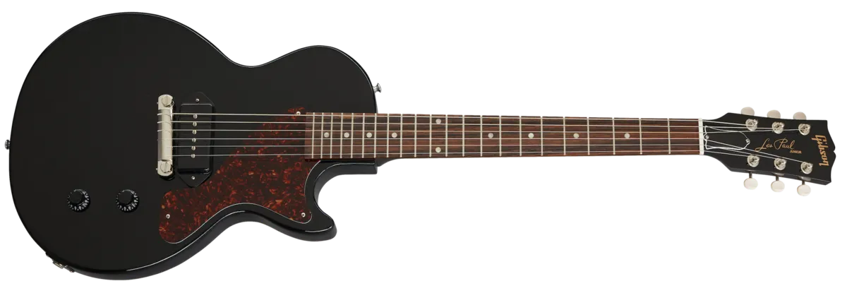 The Les Paul Junior returns to the classic design that made it relevant, played and loved -- shaping sound across generations and genres of music. It pays tribute to Gibson's Golden Era of innovation and brings authenticity back to life. Introduced as an affordable option for students and beginners in 1954, the Les Paul Junior has been embraced by musicians for over 60 years. The single cutaway slab mahogany body, single dogear P-90 pickup, single volume and tone controls all add up to a whole lot of guitar which is greater than the sum of its parts. The fat 50's-style neck profile and wraparound bridge add to the equation for rock solid tone. Available in Tobacco Burst and the new Ebony finish with tortoise shell pickguard.
