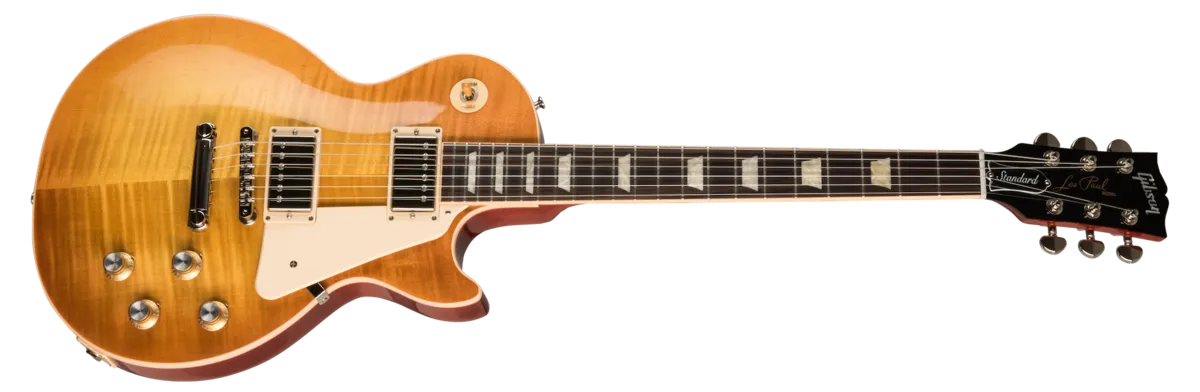 The new Les Paul™ Standard returns to the classic design that made it relevant, played, and loved -- shaping sound across generations and genres of music. It pays tribute to Gibson's Golden Era of innovation and brings authenticity back to life. The Les Paul Standard 60s has a solid mahogany body with an AA figured maple top, and a SlimTaper™ 60s-style mahogany neck with a rosewood fingerboard and trapezoid inlays. It's equipped with a classic-style Tune-O-Matic™ bridge, aluminum Stop Bar tailpiece, Grover® Rotomatic® "Kidney" tuners, and gold Top Hat knobs with silver reflectors. The 60s Burstbucker™ pickups are loaded with Alnico 5 magnets, audio taper potentiometers, and Orange Drop® capacitors.