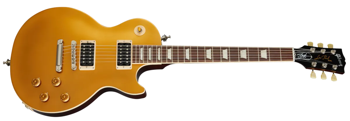 Gibson and Slash are proud to present the Slash Collection. It represents influential Gibson guitars Slash has used during his career, inspiring multiple generations of players around the world. The Slash Collection of Gibson guitars can be seen live on stage with Slash today. The Slash "Victoria" Les Paul™ Standard Goldtop features a maple top, a solid mahogany body with a dark finish on the back, and Slash’s personal touches, including a C-shape neck profile, Gibson Custom BurstBucker™ Alnico 2 pickups, color-coordinated hardware appointments, hand-wired electronics with Orange Drop® capacitors and a vintage-style hardshell case. Exclusive to the Slash Collection is Slash’s “Skully” signature drawing on the back of the headstock, Slash’s signature on the truss rod cover, a blank truss rod cover in the case, Slash-approved Ernie Ball® strings, and four Slash Jim Dunlop Tortex® picks.