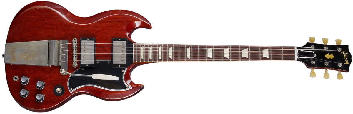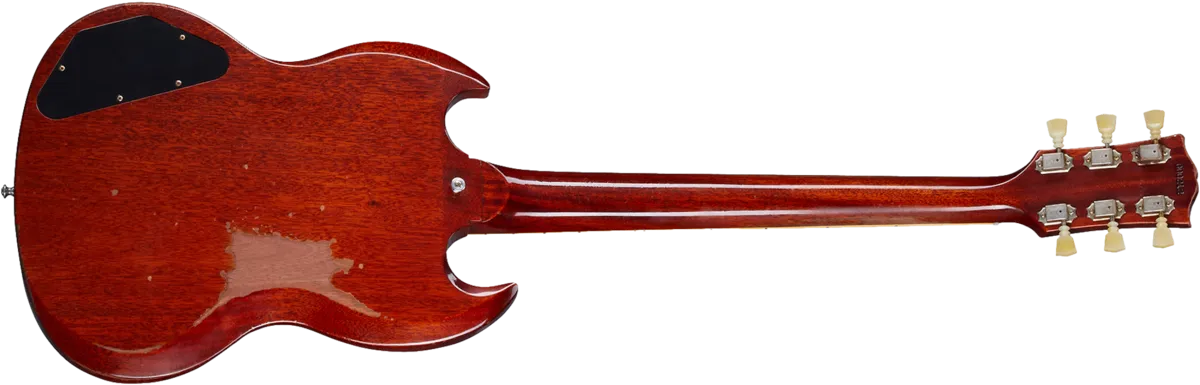 Regardless of the fact that George Harrison and Eric Clapton rocked a '64 SG™ Standard, that model year was clearly a standout for SGs in general. The clunky side-pull vibrato had been replaced by the dependable Maestro™ Vibrola. The neck profiles had increased in size, resembling the profile found on 1959 Les Pauls™. And the balance, playability and look of the SG seemed to come into its own. For all those reasons, the Gibson Custom Shop is proud to present the 1964 SG Standard Reissue. Along with the Maestro Vibrola and chunky neck profile, it has all the hyper-accurate vintage specs one could possibly want -- original construction methods, a real red aniline dye finish, chemically-recreated plastics, replica electronics, and more. The result is perhaps the best looking, feeling and sounding SG Reissue yet. It also features Heavy Aging by the skilled artisans of the Murphy Lab. The Murphy Lab Heavy Aged finish treatment, paired with heavily aged hardware, simulates decades of heavy play wear, giving it the unique character, vibe, and feel of an original example from the Gibson Golden Era.