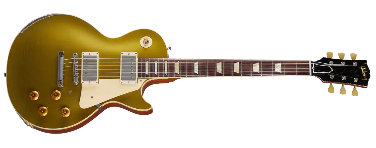 The iconic '57 Goldtop has been the tool of choice for countless guitar heroes. Its elegant gold finish, classic solid mahogany/maple construction and versatile humbucking pickups represent everything one could possibly need in a Les Paul™ model. This authentic recreation exemplifies Gibson Custom Shop's tireless quest for accuracy to the original year of production, from the woods to the construction to the parts and precise contours throughout. Each Custom Shop Reissue is every bit the instrument and statement piece as the priceless vintage examples, providing an ownership experience that is endlessly fun. It features Ultra Heavy Aging by the skilled artisans of the Murphy Lab. The Murphy Lab Ultra Heavy Aged finish treatment, paired with heavily aged hardware, simulates decades of heavy play wear, giving it the unique character, vibe, and feel of an original example from the Gibson Golden Era.