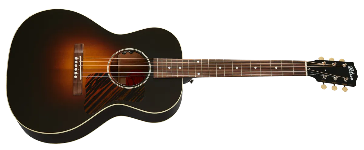 Gibson was a pioneer in the development of small body guitars in the beginning of the 1900s with its "L-Series Small Body" acoustics. These smaller Gibsons deliver a tonality that is best described in Gibson's 1934 catalog as a sound of "perfect balance." The L-00 Original, while achieving all the advantages of an acoustic that is comfortable to play in your home, still produces Gibson's rich full sound. The new L-00 Original features a classic white script Gibson logo, subtle antiquing on the top and back binding, and Golden Age nickel tuners.