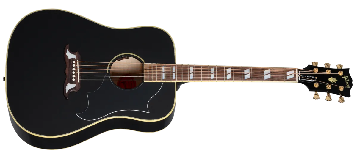 The Gibson Elvis Dove is based on a customized 1969 Gibson Dove that was gifted to the King of Rock and Roll by his father, Vernon Presley, and that Elvis played in concert regularly from 1971 until 1975, including during the 1973 satellite-televised Aloha From Hawaii concert. In 1975, Elvis gifted it in mid-performance to an astonished audience member at a concert in Asheville, North Carolina. The Gibson Elvis Dove features a solid Sitka spruce top, solid maple back and sides, and a mahogany neck capped with a rosewood fretboard. It also comes equipped with modern LR Baggs VTC electronics with an under-saddle piezo pickup and soundhole-mounted volume and tone controls, making it stage-ready, right out of the included hardshell case.
