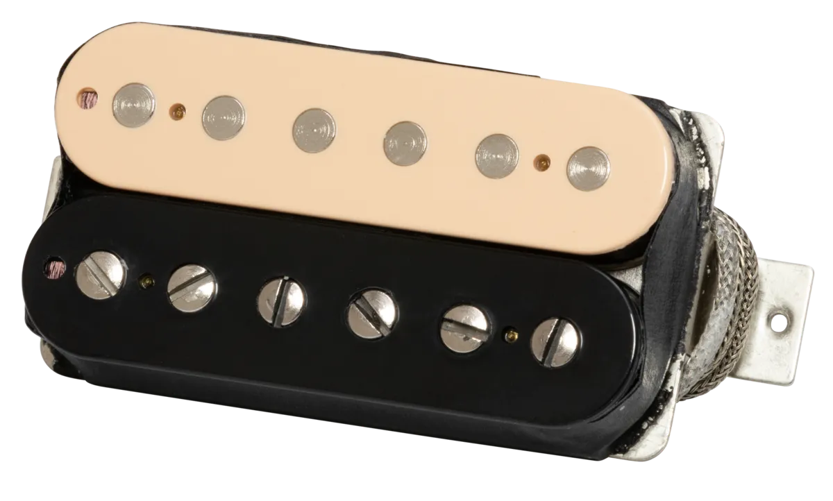 Introduced in 1990, the '57 Classic provides warm, full tone with a balanced response, packing that classic Gibson Patent Applied For humbucker™ crunch. They are made to the same specs as the originals, including Alnico 2 magnets, nickel-plated pole pieces, nickel slugs, maple spacers, and vintage-style, two-conductor braided wiring. The ’57 Classic humbucker features balanced coils for a smoother, creamier tone and excellent hum cancelation. The pickups are also wax potted to remove all internal air space and any chance of microphonic feedback.