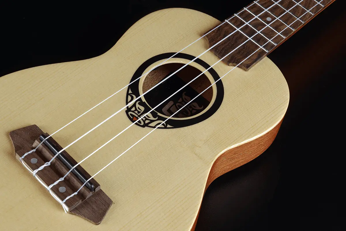 Denne modellen har heltre granlokk, med åpen og fin klang. Disse ukulelene med buet bunn kommer med en natural satin finish som får frem treverket på en flott måte. Den har innbygd Shadow miksystem med tuner og kommer med kraftig polstret gigbag.