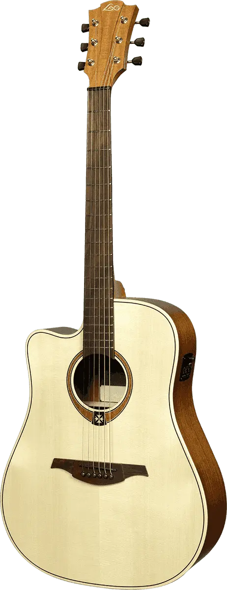 The Lag TL70DCE-NAT Left-Handed Dreadnought Cutaway Electro-Acoustic Guitar