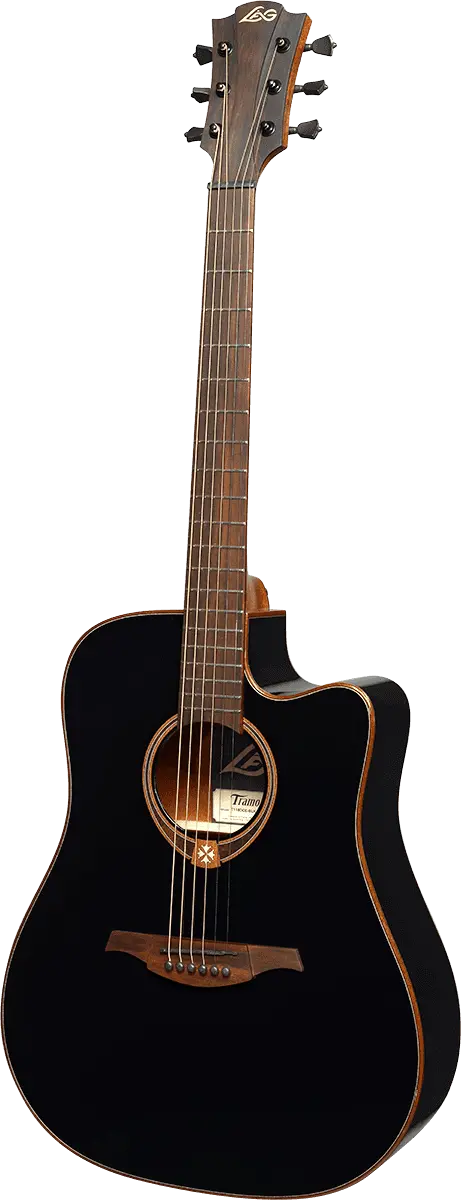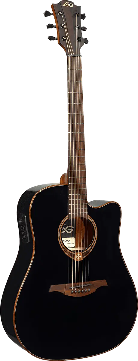 This model showcases the exquisite details that make Lag Guitars stand out. From the black graphite nut, saddle, and bridge pins that match the black die-cast machine heads, to the BrankoWood headstock, bridge, and fingerboard, every aspect of the T118DCE-BLK is thoughtfully designed. Its quarter-round body bindings not only add visual appeal but also make the guitar incredibly comfortable to play.