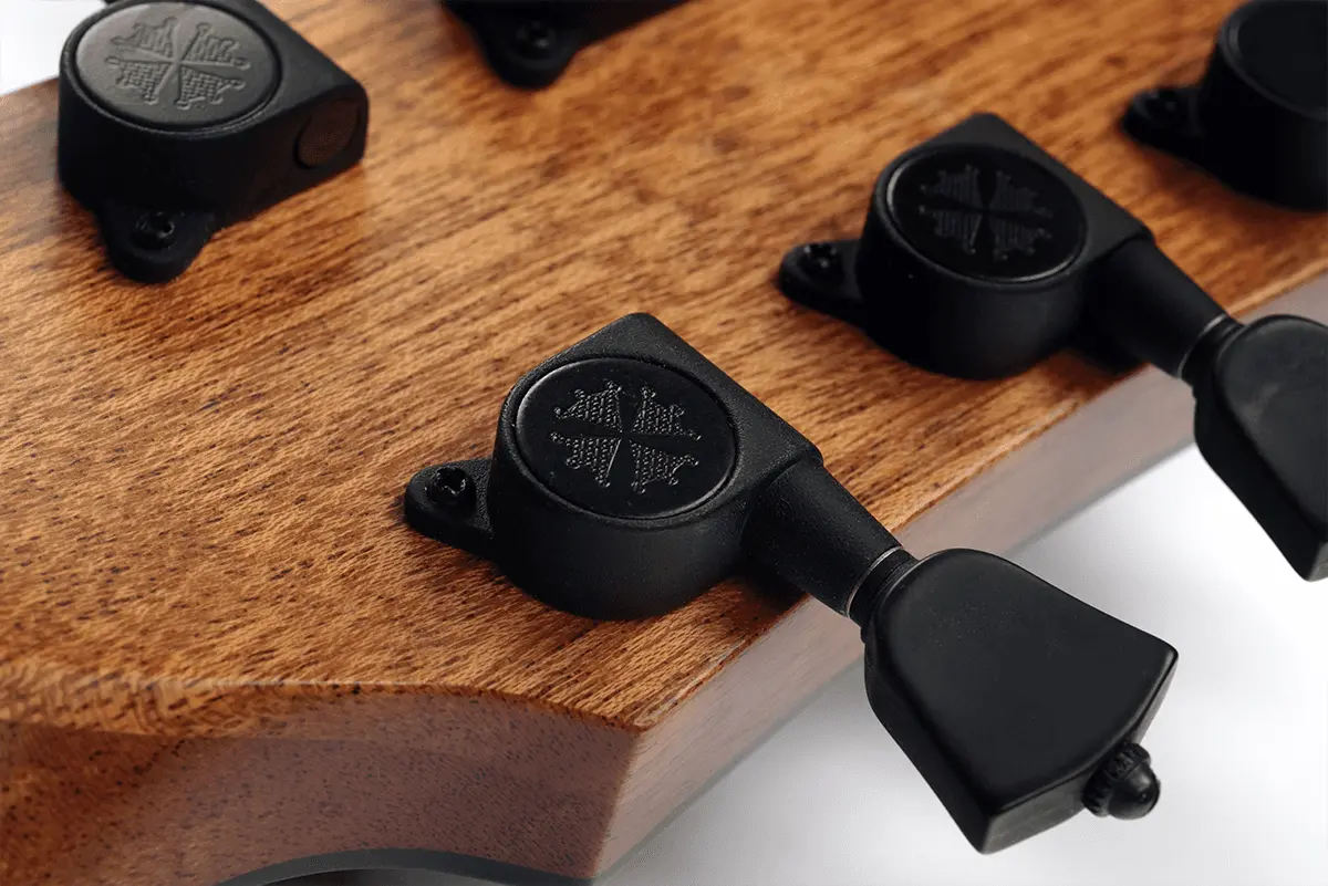 - Headstock: Brownwood med Lønne logo innlegg
