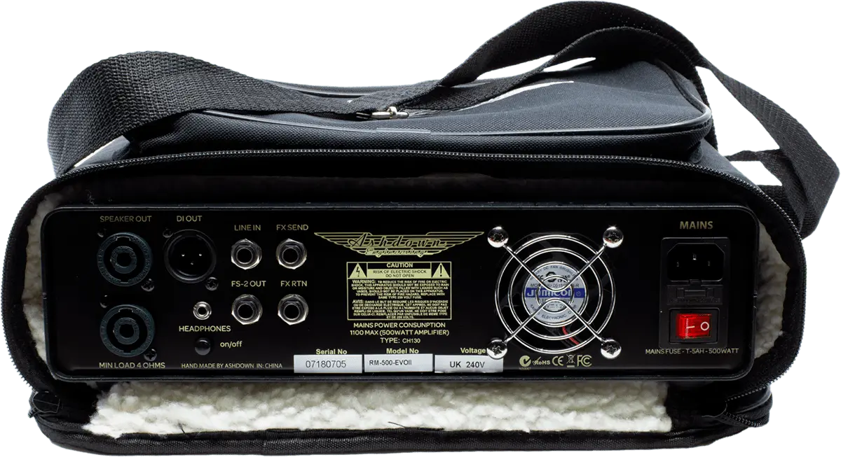 The RM-Gig Bag is the perfect case made to fit the NEW Ashdown Rootmaster EVO II heads including legacy models of the RM range. The Case is fleece lined to avoid damage to your NEW bass amp. There is a handy zip pocket on the front of the bag large enough to fit the mains lead and a speaker cable.