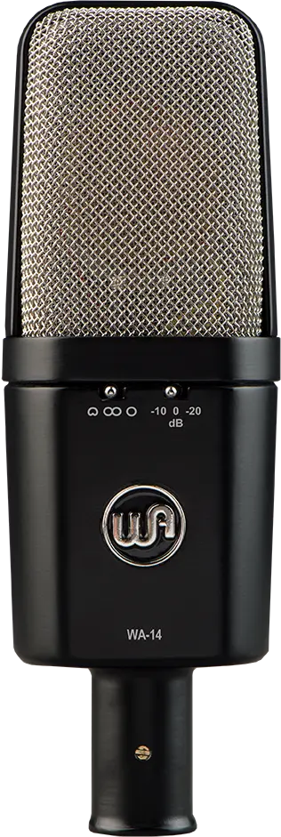 The WA-14 is a '414-style condenser microphone based on the early 1970's microphone used on countless hit records. The WA-14 utilizes a custom all-brass CK12-style capsule, CineMag USA transformer, and a fully discrete signal path. The WA-14 can be used on an array of sources, such as; punchy/warm intimate lead vocals, acoustic/electric guitars, bass, drums/percussion, strings/orchestral material, and many other sources. The WA-14 provides a realism and thickness that is true to the vintage microphone, but now at an affordable price.