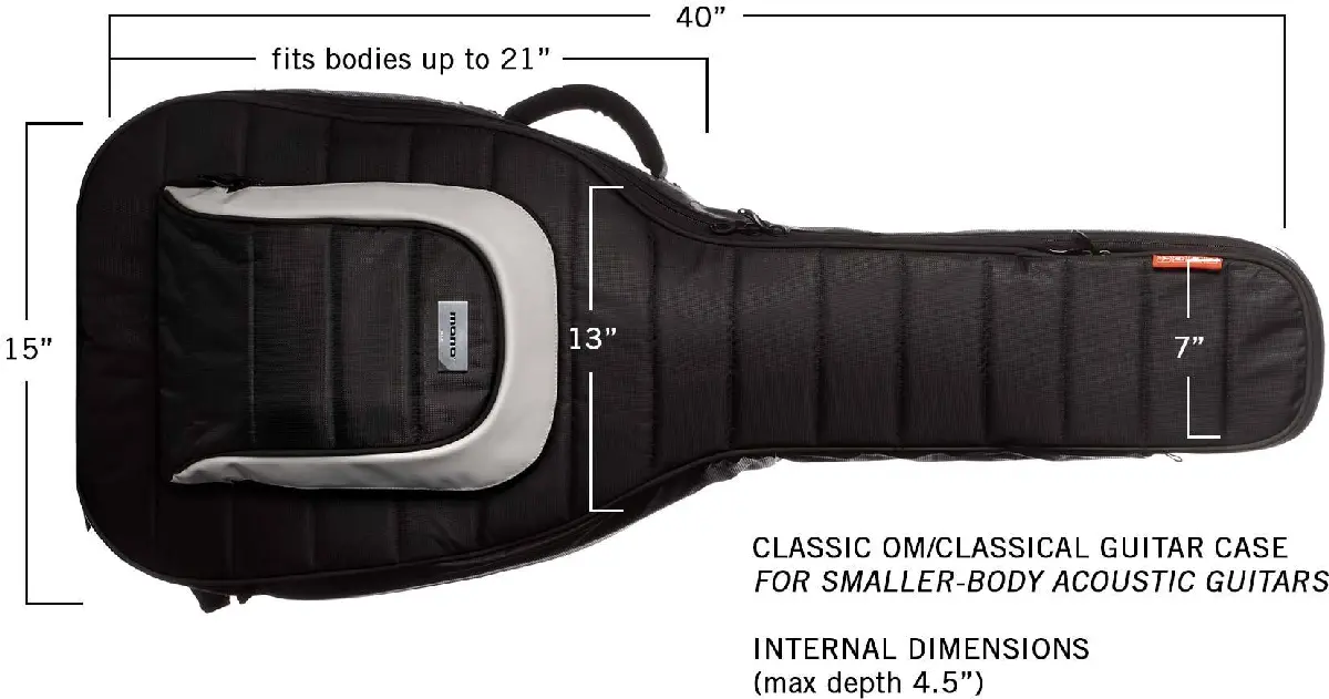 Casen er konstruert for å passe som hånd i hanske for standard body klassiske gitarer men også for Martin OM, Collings C10, Larrivee OM, Yamaha og Lag klassiske modeller og andre.