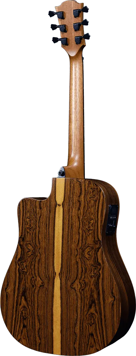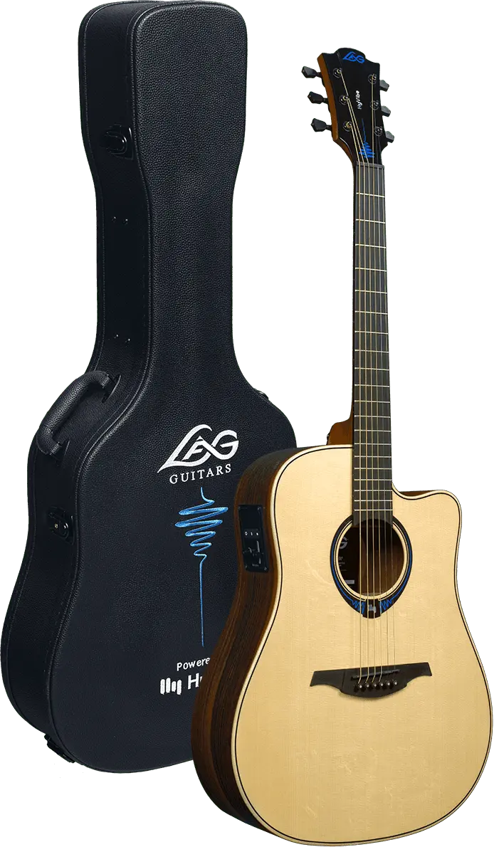 THV30DCE er toppmodellen i HyVibe serien fra Lag og her er det ikke spart på noe. De nøye utvalgte materialene og alle detaljene gjør dette til en helt unik gitar utseendemessig og ikke minst når det kommer til selve lydkvaliteten. Lokket er av spesielt utvalgt bearclaw gran, som tar klangen i Engelmann granen enda et steg videre takket være spenstigheten i treverket. Helte lokket i Bearclaw Engelmann sammen med kroppen i Bocote gir THV30DCE en fantastisk respons, med fyldig mellomtone og imponerende sustain.