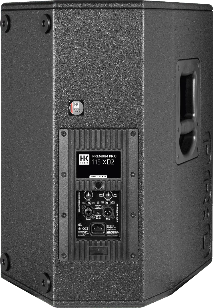 A real all-rounder that can be used as a satellite, compact 15″/1″ full-range speaker or low-profile stage monitor. The well-balanced frequency response ensures low feedback and can be adapted to various applications using the Music/Speech controller. The integrated DSP-based power electronics with 1,200 watts of power make the PR:O 115 XD2 a very flexible sound tool. The built-in MultiGrips allow safe and comfortable handling and make professional rigging a breeze by simply installing the TB-45N or TB-45NQ tilt brackets on them.