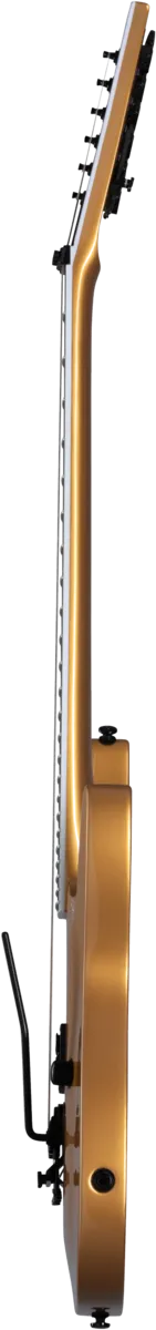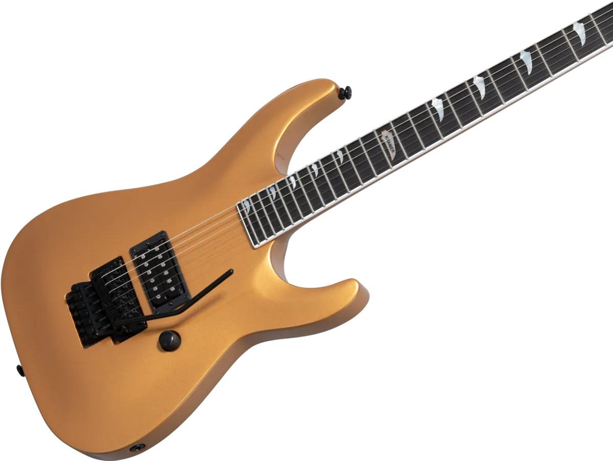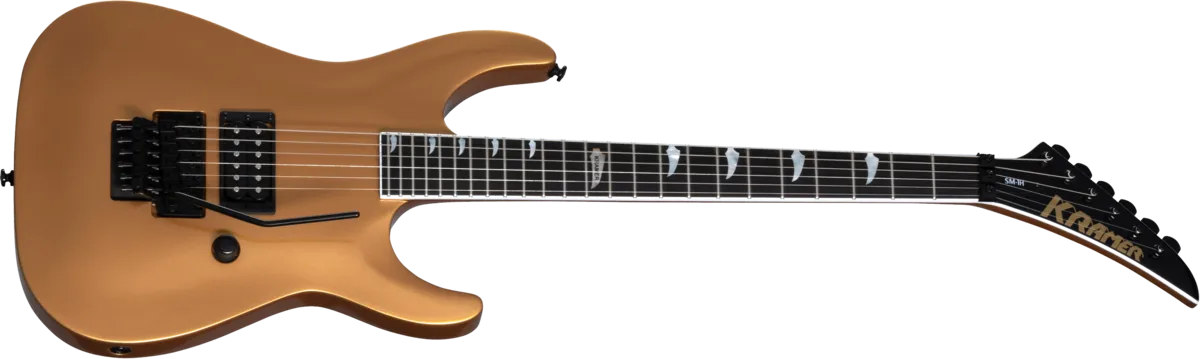 The SM-1 H is an exciting new version of the SM-1 and an updated version of the original Kramer Stagemaster Mach II. It retains the neck-through, double-cutaway mahogany body, ebony fingerboard, and Floyd Rose® 1000 series tremolo and R2 1000 series locking nut of the original SM-1, but has simplified electronics consisting of a single volume control with push/pull series/parallel switching and a Seymour Duncan® JB™ humbucker™ in the bridge position. Available in Buzzsaw Gold, Shockwave Purple, and Tronius Silver.