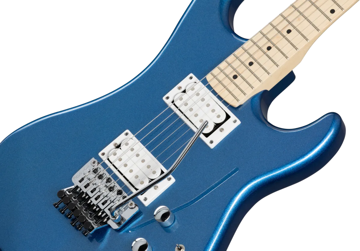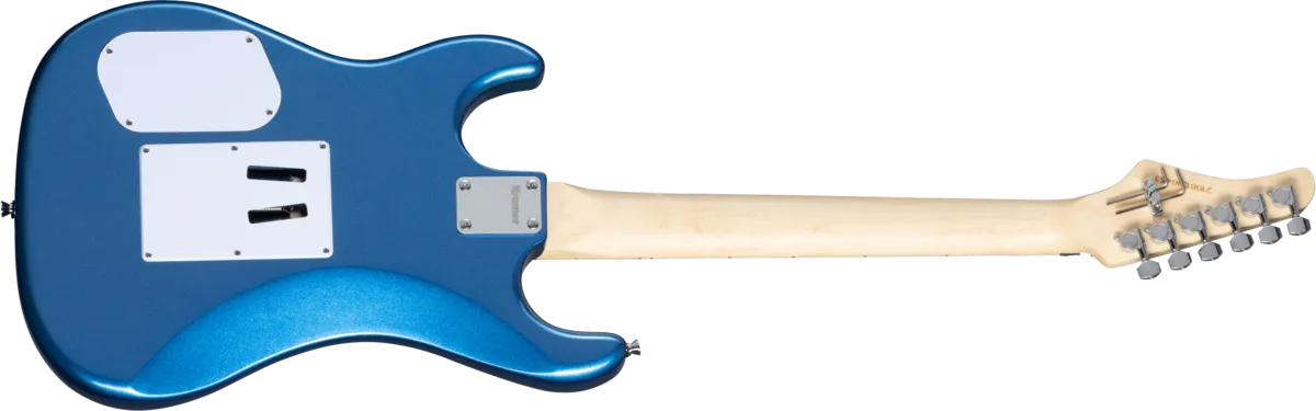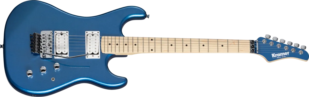 The Pacer Classic is part of Kramer's Original Collection and is a superb tribute to the original 1982 Kramer that knocked the guitar world for a loop. The Pacer Classic is built for speed, with a 25.5" scale maple neck with a Kramer K-Speed SlimTaper™ C profile and 22 medium jumbo frets. The Pacer Classic has chrome hardware, an alder double-cutaway body, a pair of double white, open-coil Alnico Classic 5 humbuckers™, and a licensed Floyd Rose® Tremolo bridge and R2 Locking Nut. Available in Radio Blue Metallic, Scarlet Red Metallic, and Purple Passion Metallic gloss finishes.