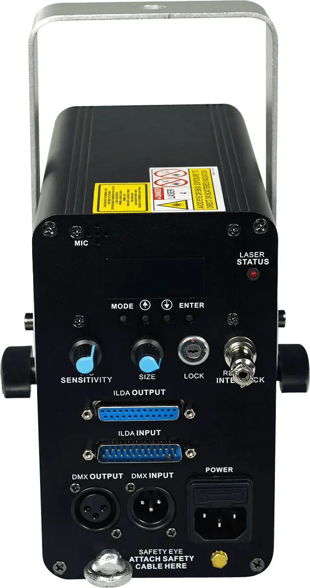 The Spectrum 1500 RGB ensures striking effects within a wide range of colours thanks to its three powerful lasers – red, green and blue. Ideal for installation in a club or for DJs and mobile discos, it can cover a large volume of space with beautiful multi-coloured layers thanks to its wide-angle scanning beams and scanner motors that ensure optimum fluidity to the dynamics of the effects. The Spectrum 1500 RGB is easy to use and offers no less than 2000 internal programmes (tunnel effects, waves, geometric patterns, graphics, etc.) for automatic or music-controlled operation. It is fully DMX controllable on 6 or 34 channels for precise control of the laser effects and their rotation speed. Finally, the laser is IDLA compatible to customise patterns for even more spectacular effects.