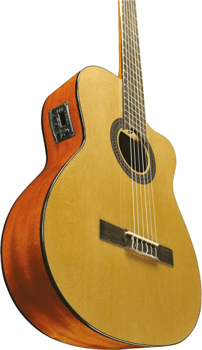 The VIBRA series is designed for classical guitar students. The 150 CW Eq model derives from the VIBRA 100; a Fishman preamp was installed in conjunction with the Cutaway to make this instrument even more versatile. It has been specifically designed for students who need to combine a performing studio instrument, an excellent guitar for live performance and a great quality / price ratio.